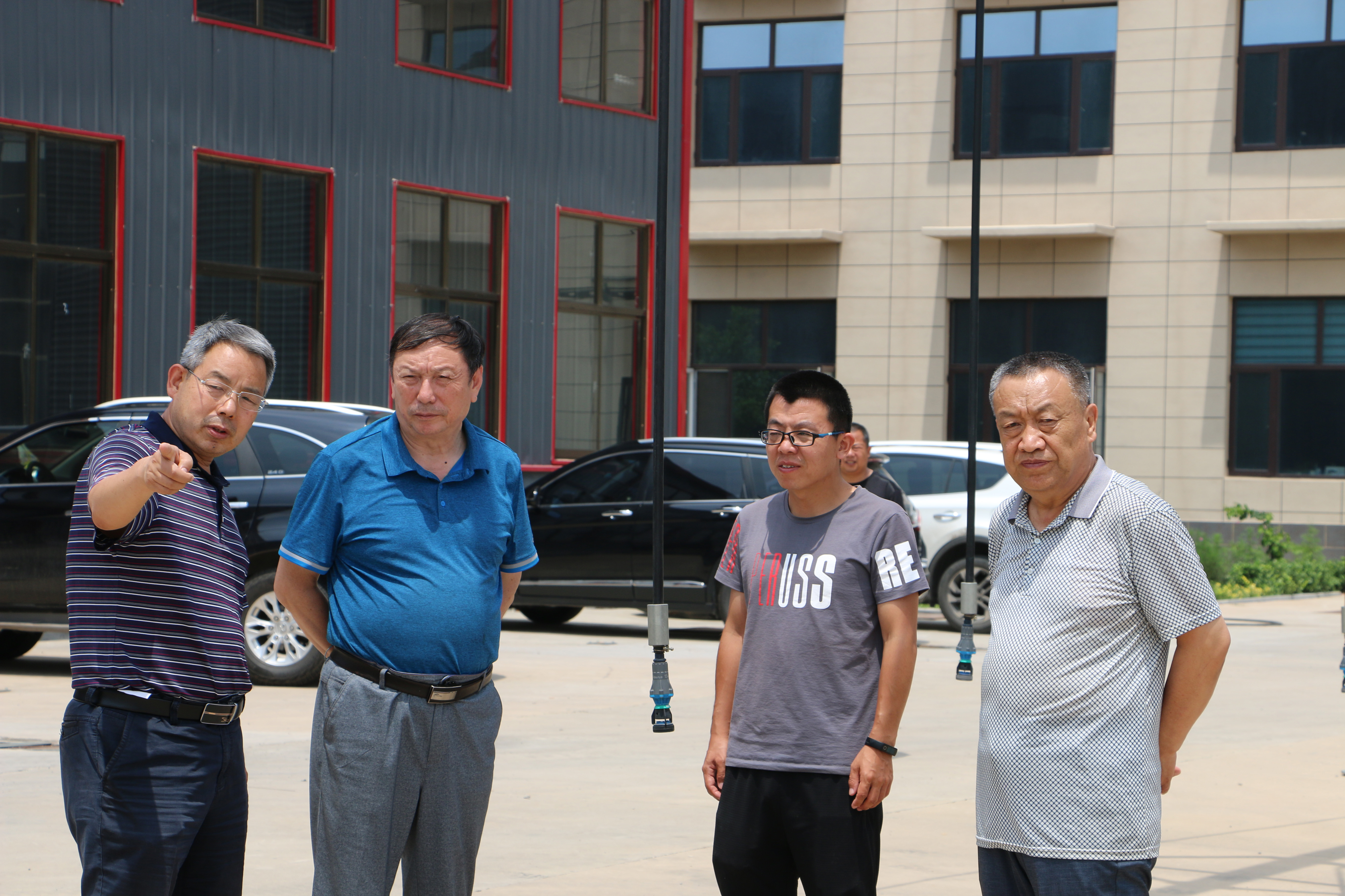 2020年7月1日,河北省委省政府決策咨詢委員會副主任、農業(yè)組組長,河北省鄉(xiāng)村振興專家委員會名譽主任,河北省農科院原院長王慧軍研究員一行5人到河北省滄州市,華雨灌溉設備制造有限公司開展農業(yè)節(jié)水灌溉設備考察、調研。并對其與河北省農科院糧油作物研究所共同承擔的河北省農機新機具新技術研發(fā)項目—“平移式水肥一體化智能型淋灌機研發(fā)”項目進行技術指導。河北省農業(yè)機械化創(chuàng)新發(fā)展技術專家組組長、河北省玉米體系全程機械化崗位專家、河北省農科院糧油研究所籍俊杰研究員陪同調研。